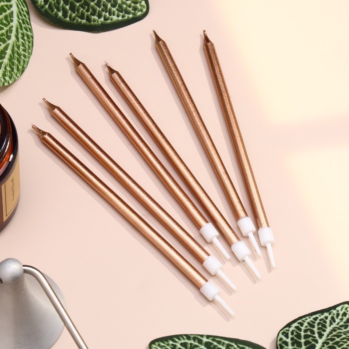 Свечи в торт "Ройс", 6 шт, высокие, 12,5 см, бронзовый металлик