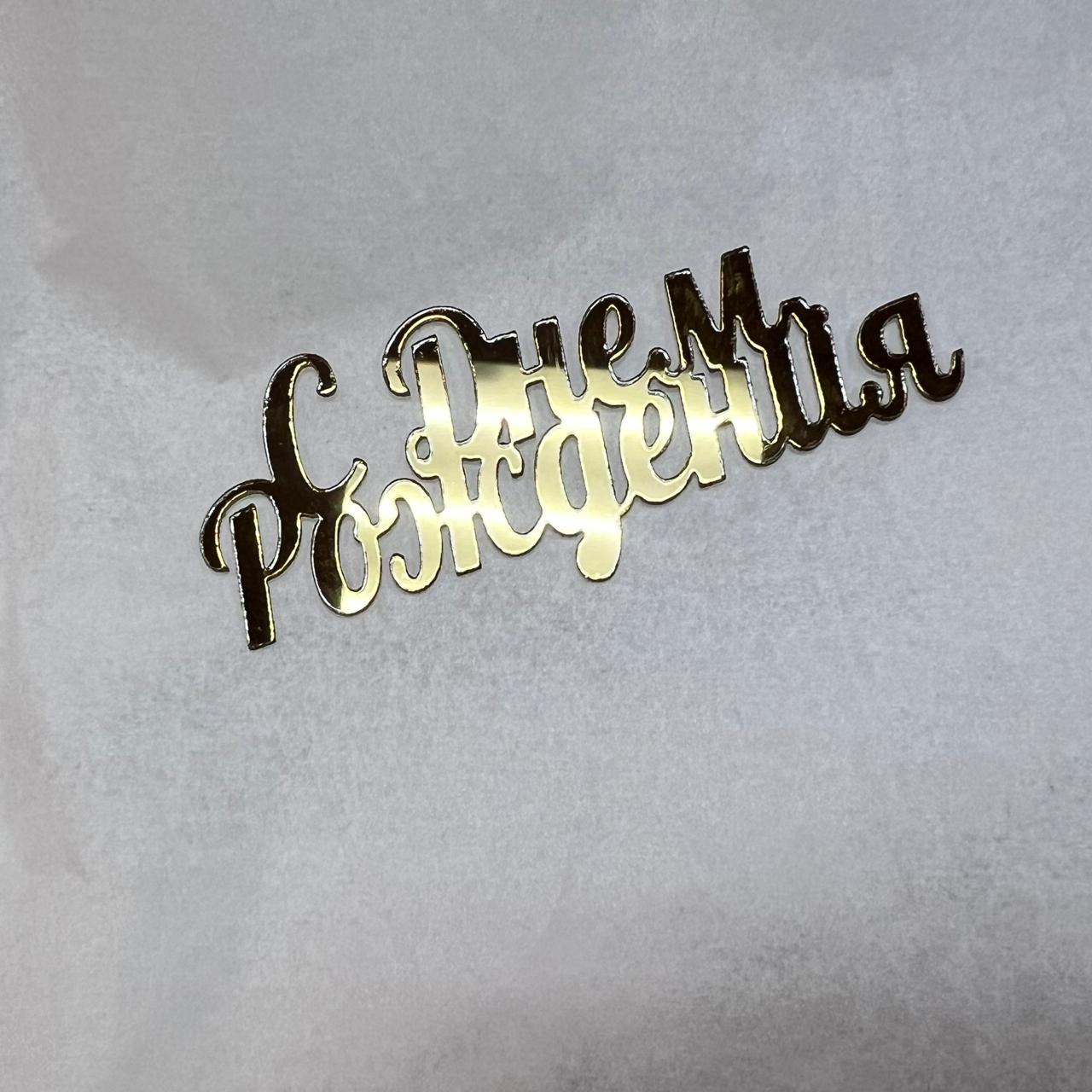Топпер акрил "С Днем Рождения" 8 см, золото