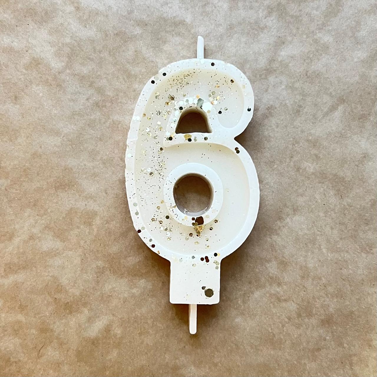 Свеча для торта "Гламур", "Цифра 6" жемчуг с золотом