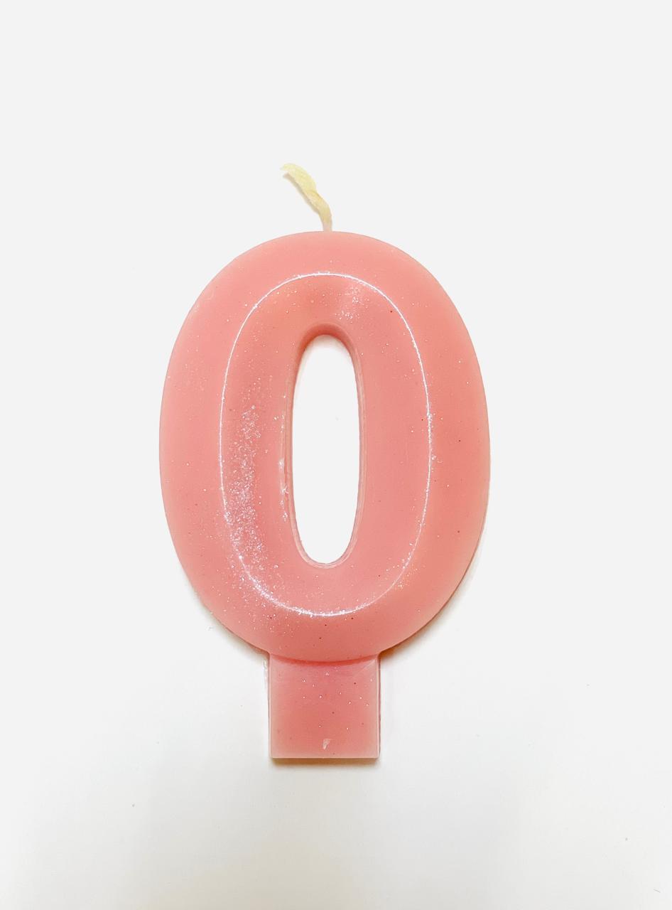 Свеча для торта восковая "Грани", "Цифра 0", розовый перламутр