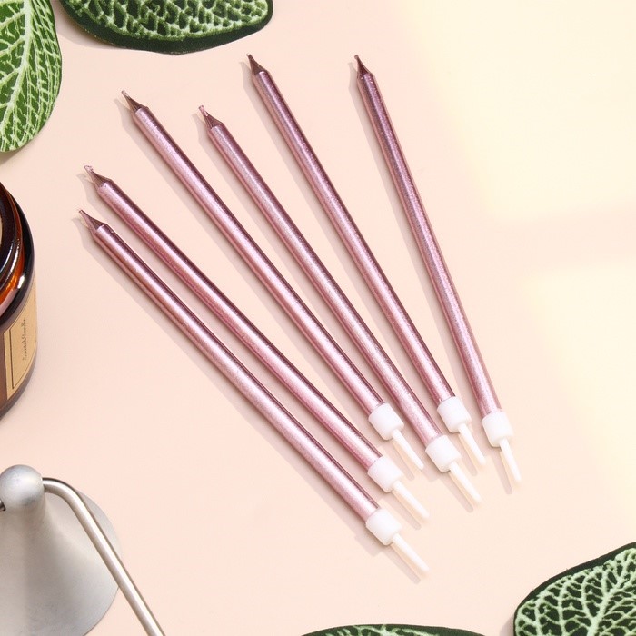 Свечи в торт "Ройс", 6 шт, высокие, 12,5 см, розовый металлик
