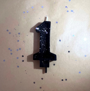 Свеча для торта восковая "Гламур", "Цифра 1" черная с серебром100 руб.Свечи изготовлены вручную из 100% пчелиного воска и добавления красителей.Высота свечи - 5,5см.