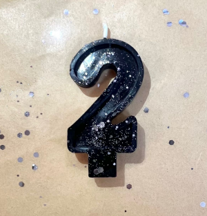 Свеча для торта восковая "Гламур", "Цифра 2" черная с серебром100 руб.Свечи изготовлены вручную из 100% пчелиного воска и добавления красителей.Высота свечи - 5,5см.